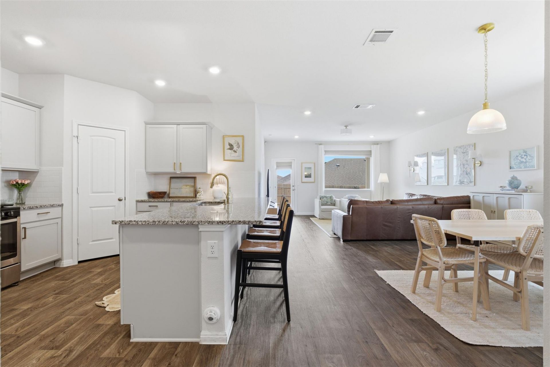 The Reagan II is a beautifully designed 1,922 sq. ft. lease home offering 4 bedrooms and 2 bathrooms, thoughtfully laid out for both comfort and functionality.This home features an open-concept floor plan ideal for everyday living and entertaining. The kitchen is a standout with granite countertops, stainless steel appliances, a decorative tile backsplash, a spacious walk-in pantry, and a large breakfast bar that seamlessly connects to the dining area and expansive family room?creating a warm, inviting gathering space.Secondary bedrooms are positioned at the front of the home, offering flexibility for guests, a home office, or additional living needs. The private primary suite is tucked away off the family room and includes a generously sized walk-in closet for optimal storage.Enjoy outdoor living on the covered patio, complete with full yard irrigation and sod for easy maintenance.This home also includes the Home Is Connected smart home package, featuring Alexa voice control, video doorbell, smart deadbolt lock, home hub, light switch controls, thermostat, and energy-efficient solar panels?bringing convenience and modern living right to your fingertips.