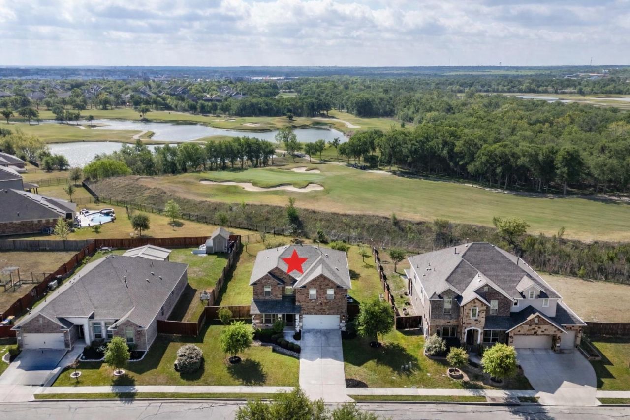 In this ShadowGlen home youll find 4 bedrooms and 2.5 bathrooms spread across a thoughtful two-story layout. Tucked away on a quiet cul-de-sac, youre only 14 miles from the energy of Downtown Austin and 18 miles from the airport, making it easy to reach major employers like Applied Materials in about 10 minutes or the Apple Campus in 30. Living in ShadowGlen feels like having a private resort right outside your door. Youre just a few blocks from the massive four-acre water park?complete with water slides and a splash pad?and the 4,300-sq ft clubhouse and fitness center. ShadowGlen is a neighborhood that encourages getting outside, whether youre exploring the seven miles of trails through native woodlands or heading over to the ShadowGlen Golf Club for a round of 18 holes and a bite at the Pin High Bar & Grill. The house itself has a natural, easy flow that makes you feel at home the moment you walk in. Right at the front, a dedicated office offers a quiet place to work from home. The heart of the house is the huge living room, where high ceilings and plenty of windows bring in a lot of natural light. In the kitchen, youll find dark wood cabinetry, granite countertops, and a large pantry that handles all your storage needs. The refrigerator and water filtration system stay with the home, as do the washer and dryer. Heading upstairs, a central game room with its own closet provides a great spot for movie nights or a play area. All four bedrooms are on this level, including a primary suite that looks out over the greens of the golf course. The primary bath is well-equipped with a dual vanity and two separate closets with custom organizers. The backyard is something special! It backs directly to the golf course with a natural berm for privacy. The composite deck was just finished in January 2025 and features two pergolas and a covered section for shade. With the mounted outdoor TV included, its a ready-made spot for weekend hangouts in 78653.