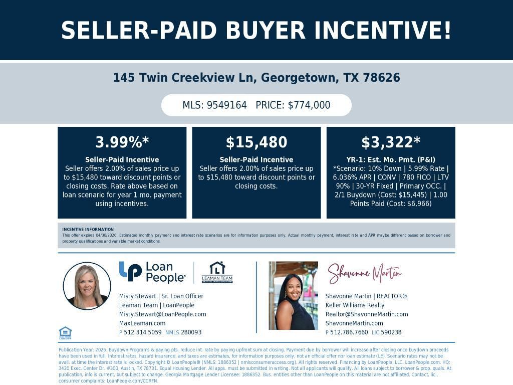 This single family home located at 145 Twin Creekview Ln, Georgetown, TX 78626 is currently listed for sale with an asking price of $774,000. This property was built in 2026 and has 4 bedrooms and 3 full baths with 2943 sq. ft. Twin Creekview Ln is located in the Twin Creek Farms subdivision within the Georgetown ISD school district. Search Twin Creek Farms real estate on www.patgunter.com today.
