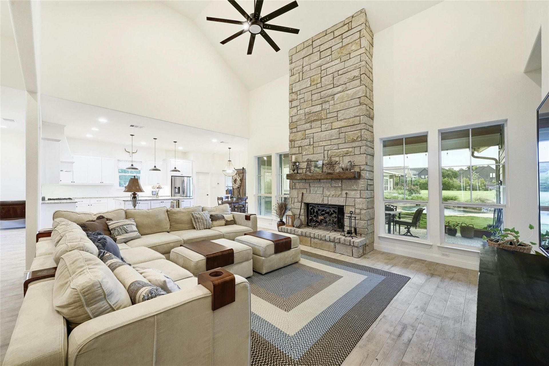 Set on 3/4 of an acre in Driftwoods coveted Howard Ranch, 1501 Trebled Waters Trail is a rare custom Craftsman compound offering nearly 4,150 square feet of flexible Hill Country living, including a 4-bedroom, 4-bath main home plus a separate 2-bedroom, 2-bath casita. A picturesque drive through the covered bridge and along tree-lined streets sets the tone for what awaits inside: vaulted ceilings, walls of windows, a two-story stone fireplace, brand-new floors, and fresh paint throughout the open-concept main home. The first-floor primary suite is a true retreat with an oversized bath and walk-in closet, while a main-level guest room or office adds versatility; upstairs, two additional bedrooms, two baths, and a generous flex space provide room for play, work, or relaxation.Outside, the home transforms into a private resort with a sparkling pool, covered and uncovered patios, and an expansive backyard designed for entertaining and unwinding under the Texas sky. The 1,150-square-foot casita offers exceptional multigenerational flexibility with its own entrance, full kitchen, laundry, and two spacious bedrooms and baths?ideal for guests, older children, or extended family. Just minutes from the dining, wineries, and breweries of Dripping Springs and approximately 30 minutes to Austin, this Howard Ranch retreat combines privacy, charm, and convenience in highly regarded Dripping Springs ISD.