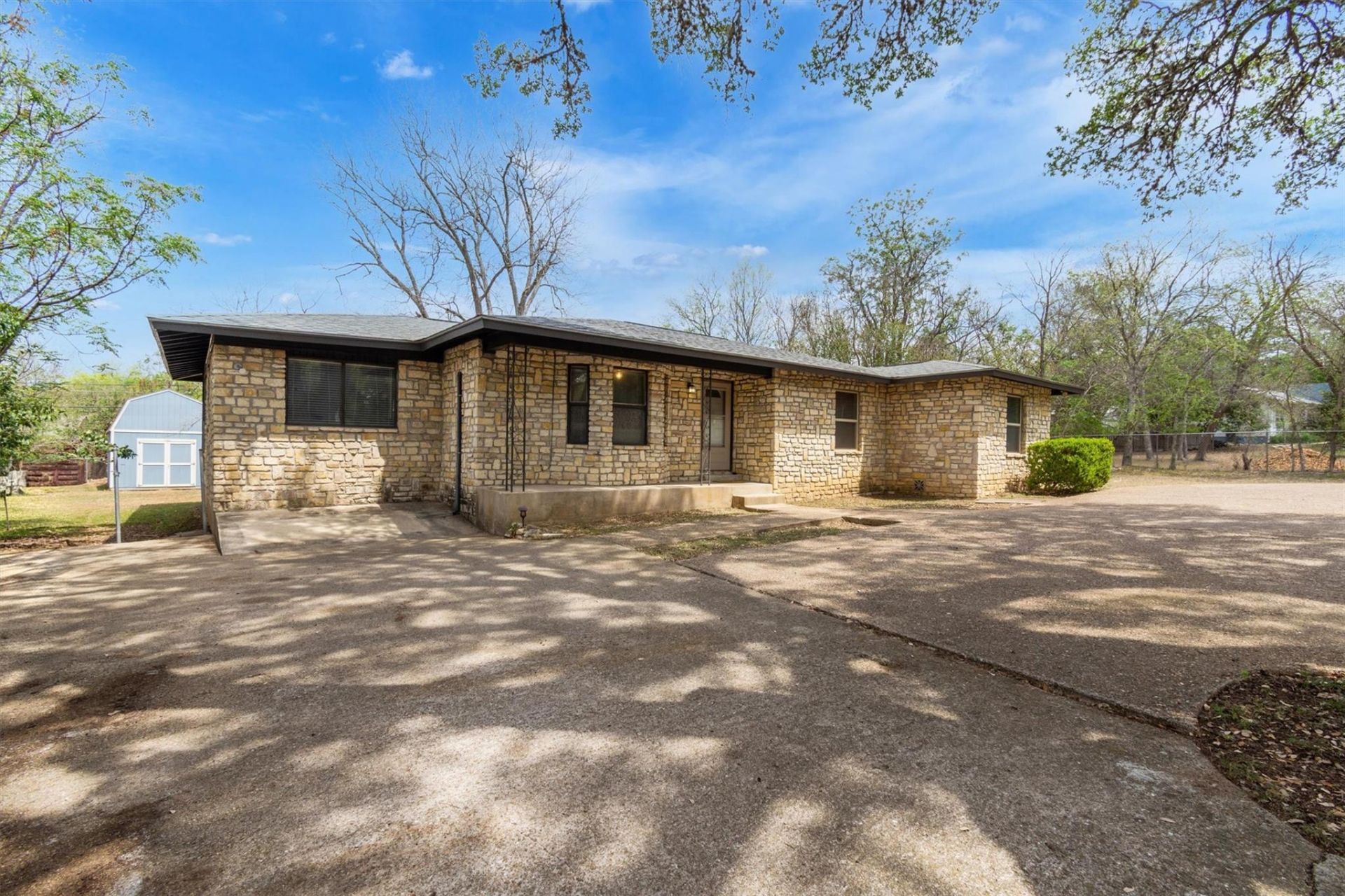 Authentically ole San Marcos! This 3 bedroom 2 bath house offers you a look into a traditional mid century home. Steps away from the TXST bus route and a short 15 min walk to campus grounds, this home offers a generous sized lot, circular drive way, huge oak trees, no HOA, multiple dining spaces, original flooring in various spaces, charming bay window, spacious back deck, storage unit and a converted garage that could easily be used as a 4th bedroom, Steps away from Walgreens, 3mi from the highway, local grocery store, dining and the downtown square. Proximity to all things San Marcos.