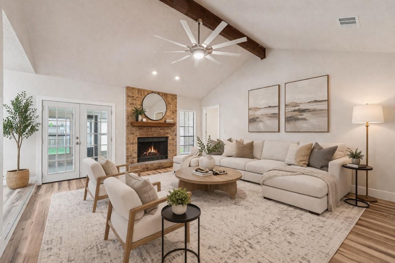 Spacious, versatile, and full of character?this home offers the perfect blend of comfort and functionality. Step inside to a warm and inviting sunken living room, where vaulted ceilings with exposed beams and a striking brick fireplace create a space that feels both open and cozy?ideal for relaxing or gathering with family and friends. The primary suite is generously sized, offering a peaceful retreat complete with a large walk-in closet and an ensuite bath featuring dual vanities and a tub/shower combination. Throughout the home, the space is enhanced with natural light and bright feel, while thoughtful updates like French doors bring in natural light and create a seamless connection to the outdoors. Designed for flexibility, the home features four bedrooms, three bathrooms, a dedicated office, laundry room, and a breakfast area, giving you the space to live, work, and entertain with ease. One of the standout features is the enclosed back porch/sunroom, offering a versatile space to enjoy year-round?perfect for a second living area, hobby space, or simply unwinding while overlooking the backyard. Outside, youll find even more functionality with a detached garage that can easily serve as a workshop, storage space, or creative studio, along with a spacious yard that provides room to spread out and enjoy. This home delivers a rare combination of character, space, and versatility, making it an exceptional opportunity for those looking for more than just a place to live.
