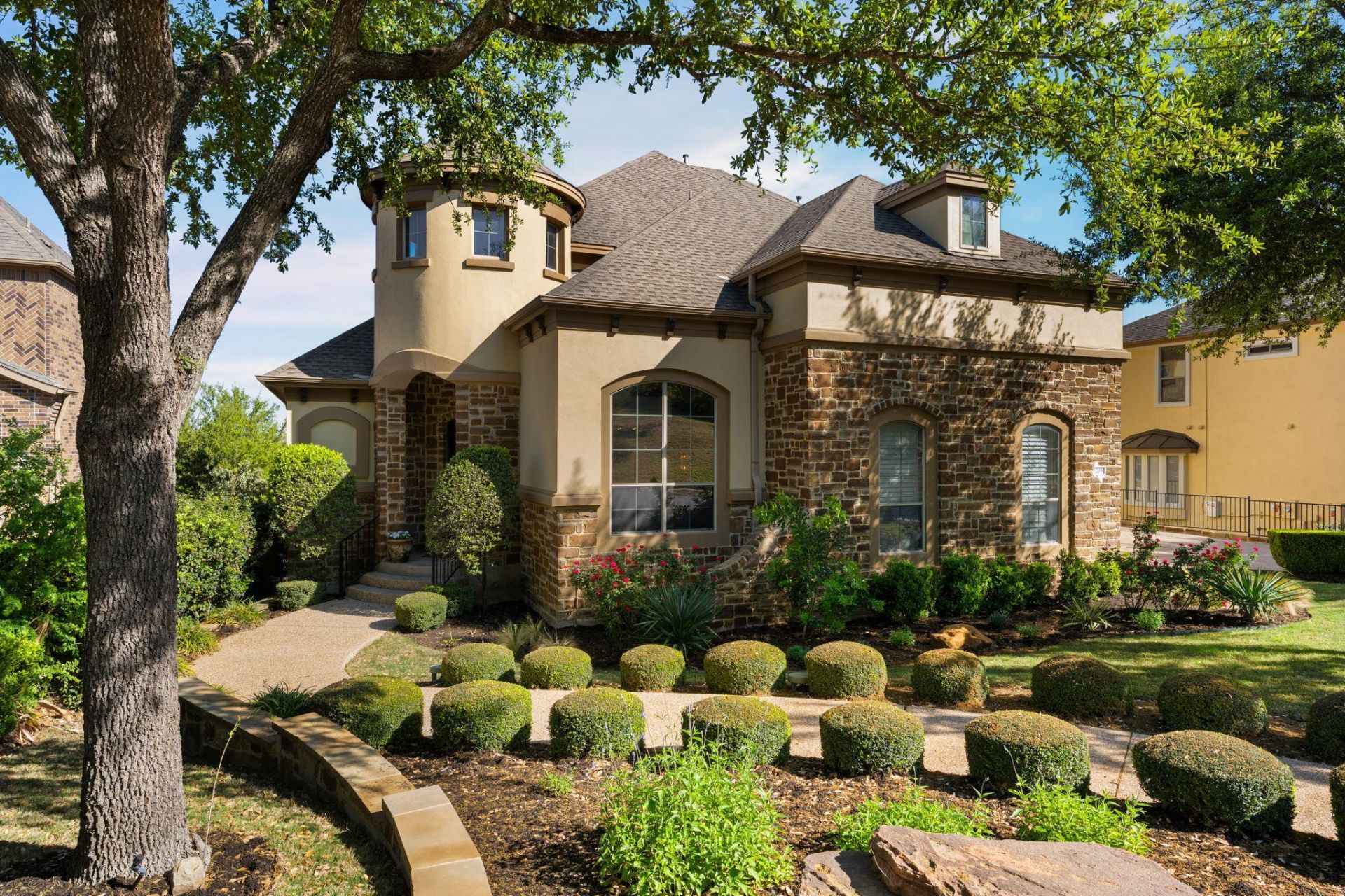 Sweeping Hill Country views set the tone for this stunning 4,555-square-foot home in the highly sought-after Bella Mar enclave of Steiner Ranch. Thoughtfully designed to balance timeless elegance with everyday comfort, the home offers a refined yet inviting atmosphere highlighted by expansive picture windows, wood flooring, custom millwork, crown molding & multiple generously sized living spaces. The main level boasts a beautiful entry featuring soaring ceilings, a curved staircase, a formal dining room, private office, 2 spacious living areas, a well-appointed kitchen with an adjoining breakfast area & a serene primary suite. Upstairs, youll find 3 generously sized bedrooms, 3 full bathrooms, game room, a dedicated theater room designed for ultimate entertainment & a covered balcony with breathtaking distant views. At the heart of the home is the gourmet kitchen with granite countertops, butcher block center island, ss built-in appliances, gas range & a breakfast area overlooking the backyard/pool. The primary suite also captures the stunning views, offering a peaceful retreat with a light-filled spa-like bathroom with dual vanities, a walk-in shower, soaking tub & walk-in closet. Step outside to the covered outdoor living area, where breathtaking panoramic views set the backdrop for year-round enjoyment. This inviting space is equipped with a gas fireplace, built-in grill & dining area ideal for entertaining or simply relaxing. Step down to your resort-style pool & spa, perfectly complemented by a pergola & multiple lounge areas all set against the privacy & natural beauty of the greenbelt. Experience the ultimate outdoor lifestyle in this remarkable property & community. Enjoy resort-style amenities, including pools, parks & tennis courts. Just minutes away, youll find the UT Golf Club, along with dining & shopping. You are moments away from Lake Austin & the public boat ramp & there are more than 20 miles of scenic trails to explore throughout the community.