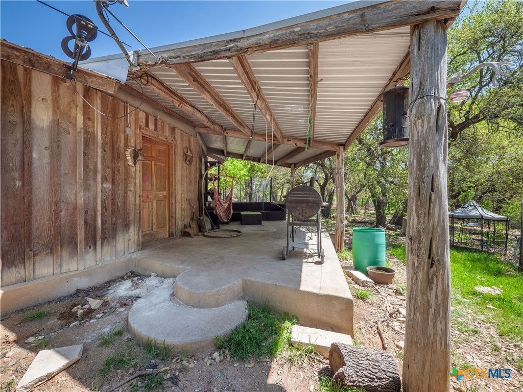This 3-bedroom, 1-bathroom home in Florence offers a rare architectural layout on a private 4.73-acre lot. The round house design features a faceted exterior and an interior centered around a massive 360-degree natural stone fireplace. The open-concept living, dining, and kitchen areas wrap around this central hearth, creating a large, interconnected space. The interior is defined by vaulted ceilings finished with light wood planking. These ceilings angle upward from the perimeter walls to a central peak, mirroring the home's unique polygonal footprint. The geometric woodwork and massive stone masonry provide a high-end, custom feel that serves as a solid foundation for your final renovations. The home includes three spacious bedrooms and an oversized bathroom. A large laundry and utility room provides extra storage and workspace. The home uses a private storage tank for water, which is filled regularly. There is no municipal water connection. The major structural character is already in place, offering a head start for a buyer looking to finish a one-of-a-kind residence. Outside, the property includes a detached carport, providing covered parking and additional utility space away from the main structure. The 4.73-acre property offers a rural retreat with plenty of room for animals, gardening, or workshop space. If you are looking for a home with significant equity potential and a layout you won't find anywhere else, this property is a must-see.