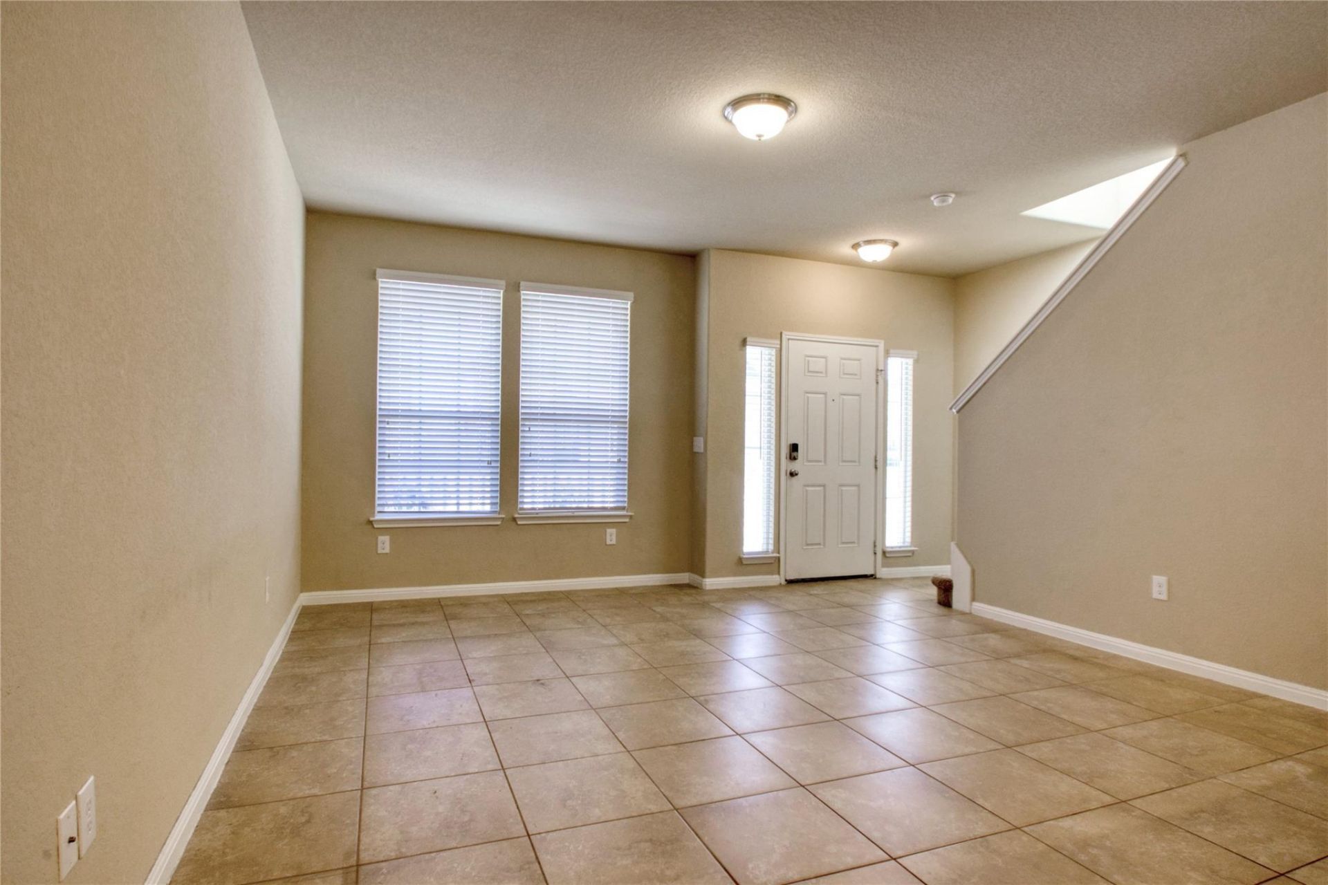 Open-concept floor plan featuring tile flooring throughout the main level and carpet on the second floor. The bright kitchen includes granite countertops and stainless steel appliances. All bedrooms are conveniently located upstairs. The private backyard provides access to a detached two-car garage. Located in a desirable neighborhood with numerous community amenities, this home offers easy access to shopping, parks, major highways, toll roads, and major employers. (Pictures taken before current tenant.) (If you have a pet, monthly Animal Admin Fees are determined by outcome of pet screening.)