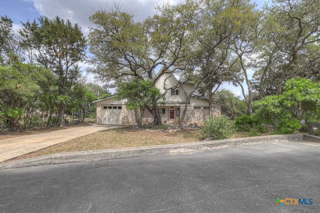 Nestled along the highly sought-after waterfront of Party Cove in Canyon Lake, this unique property offers the perfect blend of laid-back lake living and opportunity for future expansion. Situated on a large lot, there is ample space to build, add on, or create your ideal outdoor setup, complete with dedicated boat parking behind a separate fenced area on the side. Additionally, there is a parking pad off the street, convenient for guest parking. Inside, the home embraces its original Mid-Century Modern charm, full of character and nostalgic appeal. The living room is the heart of the home, featuring expansive lake views and a wood-burning stove that adds warmth without obstructing the scenery. The primary bedroom is thoughtfully located on the first floor, offering easy accessibility and privacy. Upstairs, you'll find a versatile game room with a pool table. This level includes two additional bedrooms, a full bathroom, and access to a private balcony, perfect for enjoying peaceful mornings or views over the water. The backyard is designed for entertaining and relaxation, boasting a spacious wraparound deck with plenty of room for gatherings. Surrounded by the natural beauty of the Texas Hill Country, the property is frequented by local wildlife, including deer, foxes and squirrels, creating a serene and picturesque setting. Additional highlights include a roof replacement completed in 2024, providing peace of mind for years to come. Ideally located, this home offers a convenient commute to nearby towns while still delivering the tranquility and escape of true lake life. Whether you're looking for a weekend retreat, investment opportunity, or full-time residence, this waterfront gem is full of potential and charm.