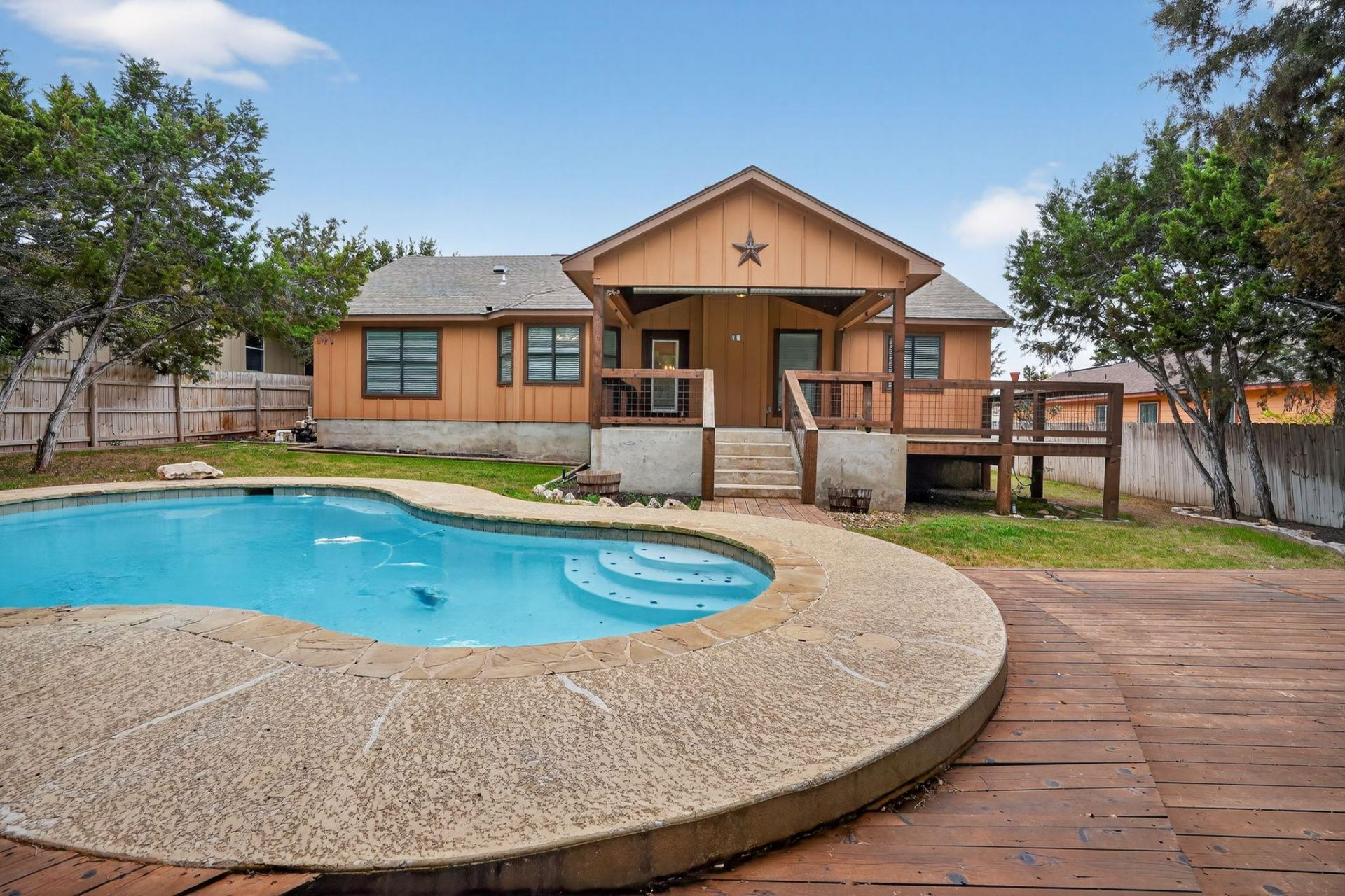 Nestled on a quiet cul-de-sac in the desirable Woodcreek neighborhood of Wimberley, this beautifully updated 3-bedroom, 2-bathroom home offers the perfect blend of comfort and Hill Country charm. Fresh paint and new flooring throughout create a bright, modern feel, while the spacious layout is ideal for both everyday living and entertaining.Step outside to your own private retreat featuring a sparkling pool, expansive deck, and a covered pavilion?perfect for relaxing or hosting gatherings year-round. Backing to a peaceful greenbelt, the property provides added privacy and a serene natural backdrop.Enjoy the best of Wimberley living in this move-in-ready home with thoughtful updates and inviting outdoor spaces.