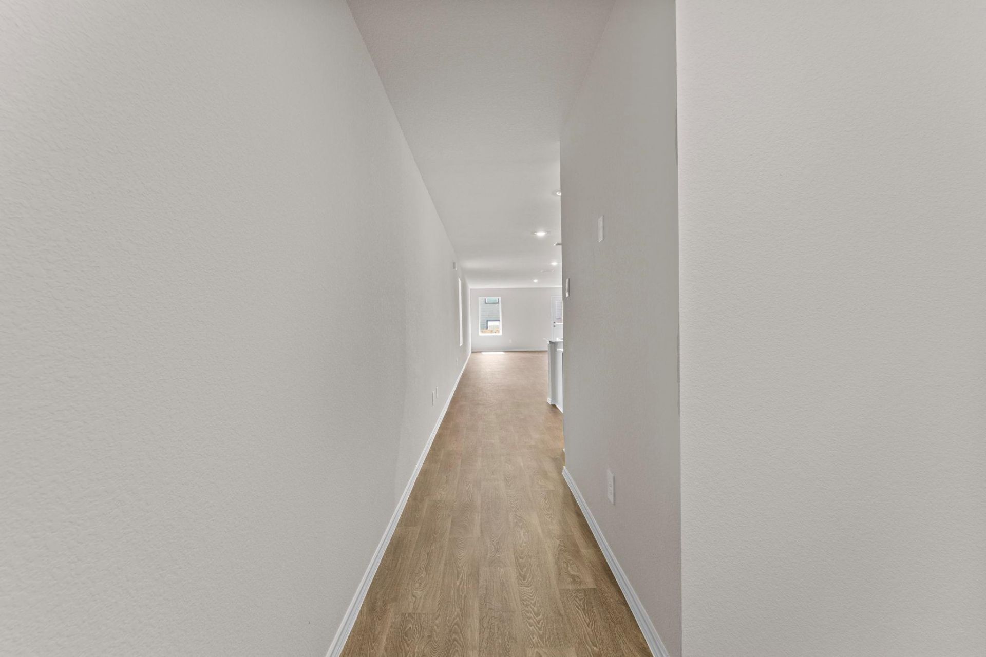 MOVE-IN READY! Check out the Emma floorplan at Sunset Oaks in Maxwell, Texas. This one-story new construction home offers 4 bedrooms, 2 bathrooms, and a 2-car garage across approximately 1,572 square feet of thoughtfully designed living space. Homes in Sunset Oaks feature modern farmhouse-style exteriors.From the covered front porch, enter through the foyer into the open-concept living area. The kitchen overlooks the dining and family rooms, creating a seamless flow ideal for everyday living and entertaining. The kitchen features a spacious island with stainless steel sink, quartz countertops, 42 upper picture-frame cabinets, a pantry closet, and stainless steel appliances, including a gas range.The private primary suite is located at the back of the home and offers a relaxing retreat with an ensuite bath featuring a walk-in shower, cultured marble vanity with trench sink, and a walk-in closet. Secondary bedrooms are positioned off the main living area and include carpet flooring and closets with wood shelving. The secondary bathroom features a shower/tub combination and cultured marble vanity.Additional features include a utility room with direct garage access, creating an ideal mud room setup. This home also includes the Americas Smart Home package, featuring a video doorbell, smart deadbolt lock, home hub, thermostat, and Deako smart switches.
