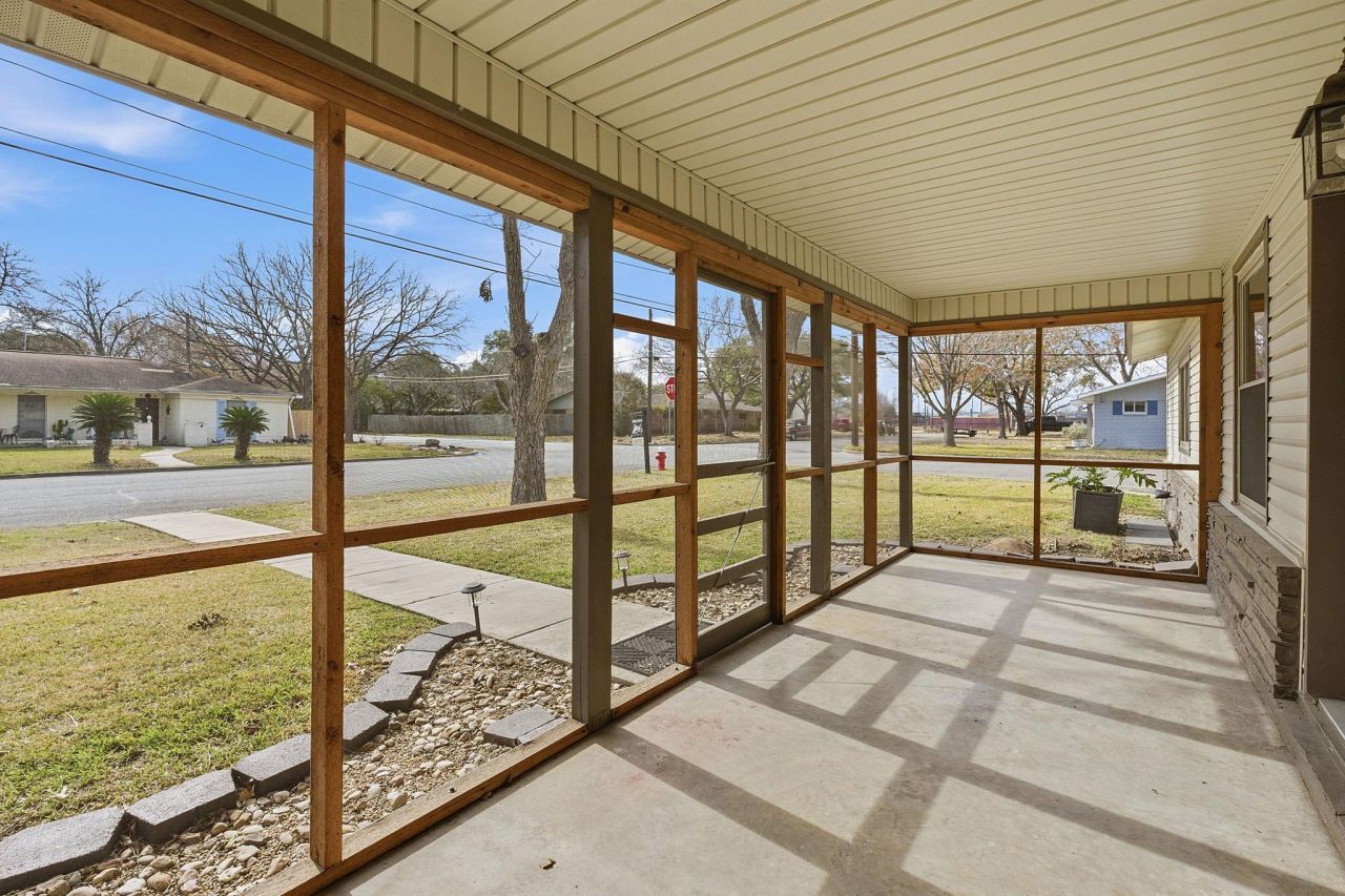 MOTIVATED SELLER! Situated on a corner lot with no HOA, this well-maintained 3 bedroom, 2 bath home offers space, updates, and an unbeatable Lockhart location. Inside, youll find two separate living areas, one of which features a built-in bar area, providing the perfect setup for entertaining, relaxing, or hosting gatherings. A gas fireplace adds warmth and character to the main living space. The home has received thoughtful upgrades, including a new roof in 2020, updated flooring in 2020, a remodeled kitchen in 2023 with quartz countertops, and all new windows installed in 2023. A charming screened-in front porch welcomes you in and enhances the homes strong curb appeal. The fully fenced backyard features three storage buildings, a large carport, and a covered back patio, offering ample space for storage, outdoor living, and entertaining. Ideally located near the Square in Lockhart, this home is also conveniently close to two elementary schools and the high school, making daily routines easy and efficient. With its combination of updates, functional layout, and prime location, this home is a standout opportunity in the heart of Lockhart.Open house on March 7th & 8th from 1PM-3:30PM. Motivated Seller! No HOA - Must see huge lot and updated home. Eligible for up to $17,500 in grants!