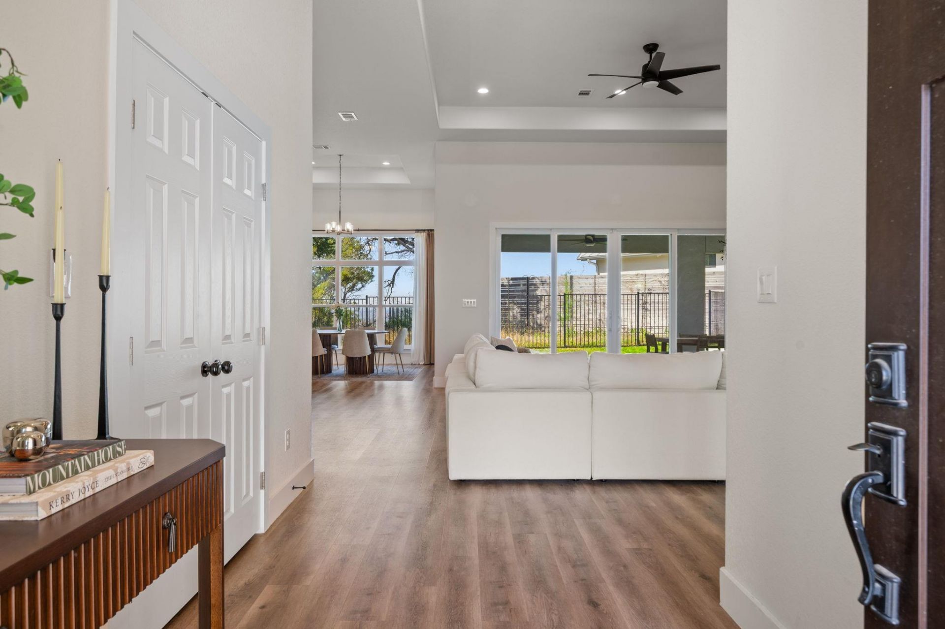 Single-story living at its finest in the sought-after Lago Vista community. This thoughtfully designed home features three generously sized bedrooms, each with its own ensuite bathroom, plus a dedicated office or flex space ? ideal for working from home or hosting guests. Enjoy high ceilings throughout, an open and bright kitchen with granite countertops, and a spacious primary suite with a spa-like ensuite complete with soaking tub, separate shower, and dual vanity.Step outside to an oversized covered patio on a large lot with a newly cleared adjacent parcel ? creating stunning open views. The neighboring lot is also available for purchase separately. The home is equipped with a Tesla solar panel and Powerwall system capable of sustaining the home off-grid, offering both energy savings and peace of mind. As a Lago Vista POA member, you'll enjoy exclusive access to 350 acres of recreational amenities including 9 lakefront parks, 4 boat ramps, a marina, pool, tennis/pickleball courts, disc golf, playgrounds, pavilions, a campground, an indoor fishing well, and rentable meeting spaces ? all private for members and their guests.